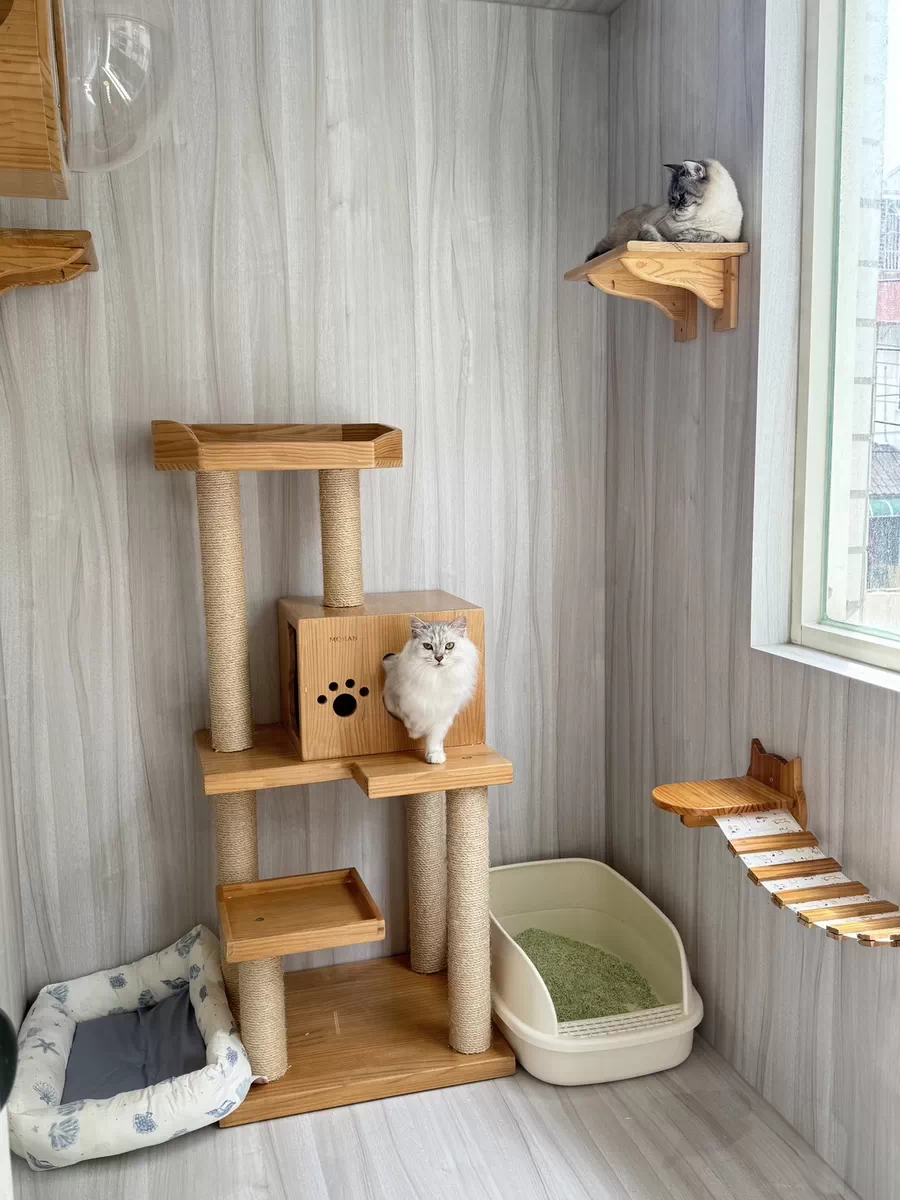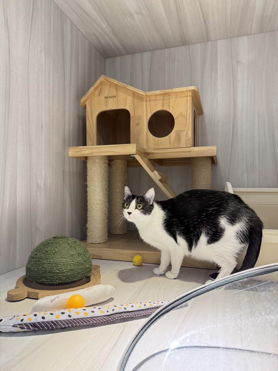 多數貓咪天性敏感、獨立,因此我們特別設計了寬敞獨立的貓房,避免外界干擾;並由具備醫療背景的照護人員,細心觀察牠們的健康與情緒。
